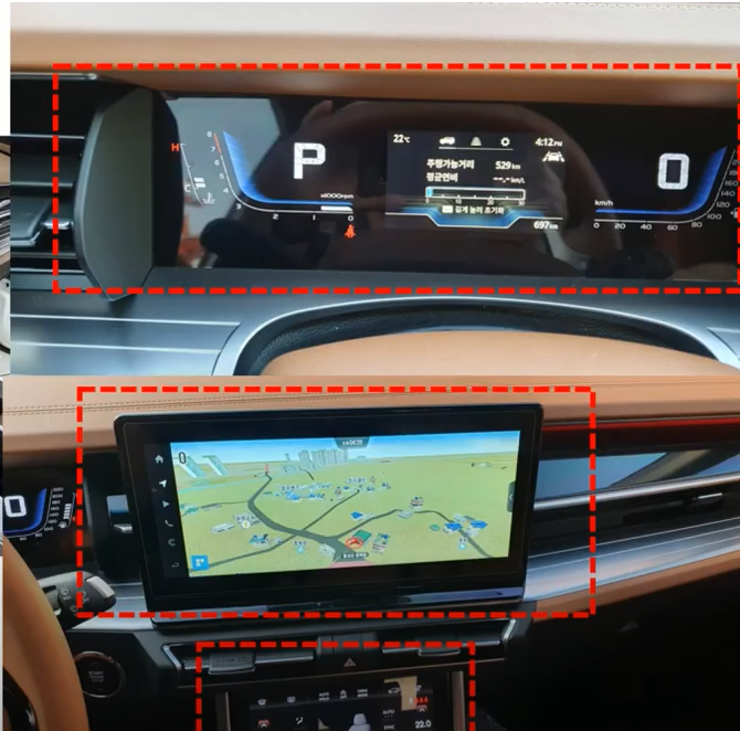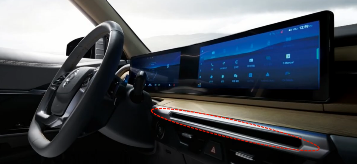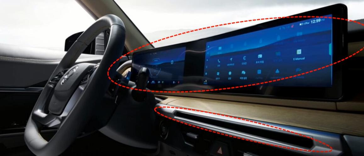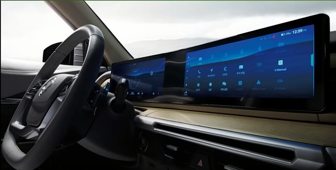 그외에는 하단 범퍼의 디자인 정도가 조금 더 토레스 대비 얌전하게 바뀌지 않을까 싶고 그 외에 크게 후면부를 바꿀 것 같진 않아요.. 그리고 토레스 evx 인테리어 사진도 한 장 공개되었는데 12.3인치 듀얼 와이드 스크린이 커다란 존재감을 발휘하고 있고 깔끔한 대시보드와 버튼들이 최소화된 인테리어가 눈에 들어옵니다.