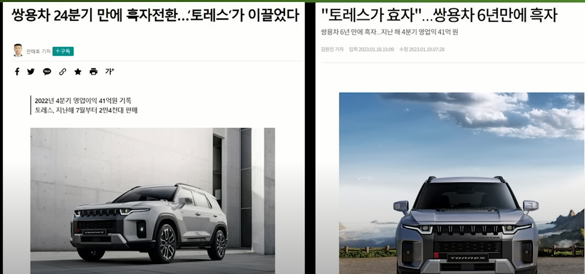 쌍용자동차는 토레스 출시 후 24분기 때문에 영업이익 41억 원을 기록하여 흑자 전환이 되었을 정도로 대중들의 토레스에 대한 관심은 엄청났는데요 토레스가 이렇게까지 흥할 수 있었던 이유는 디자인의 역할이 가장 컸다고 생각됩니다. 저뿐만 아니라 대부분의 분들이 그렇게 생각하실 텐데요..