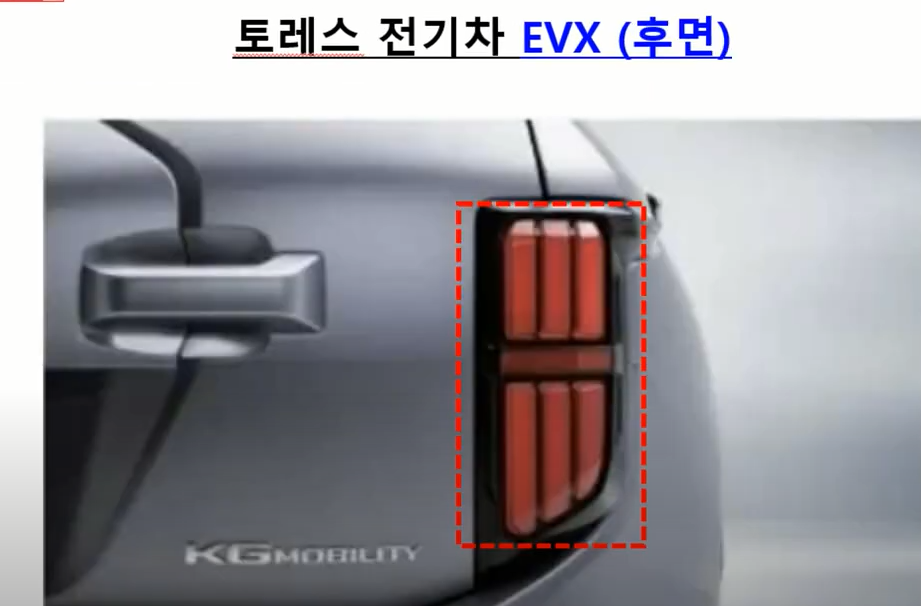 전기차는 엔진과 미션이 없기 때문에 이제는 파워트레인에 대한 중요성보다는 디자인에 대한 선호도가 전기차에서는 더 크게 작용하기 때문에 토레스 evx에게 조금 더 유리한 상황이 아닐까 싶네요 그리고 토레스 evx의 후면 디자인도 아주 살짝 공개되었습니다.