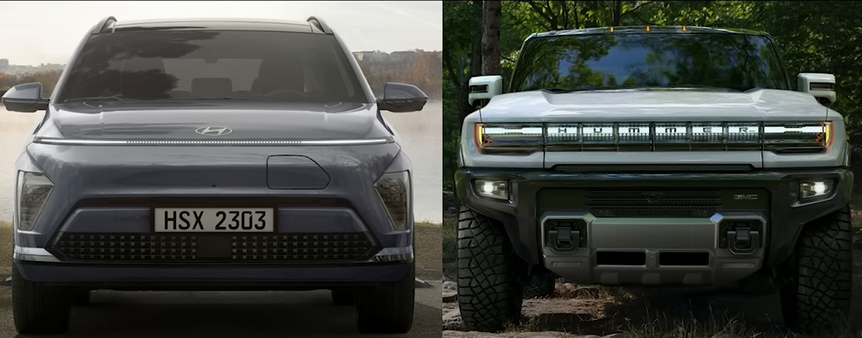 뭐 색상이 바뀌는 것까지는 어렵겠지만 개수로 충전량을 보여주는 건 가능하지 않을까 싶어요. 저렇게 끊어진 6개 LED 때문인지는 몰라도 뭐 코나 ev와 허머 EV 그 사이 어디쯤으로 보이는 디자인인데요 확실히 멋진 디자인인 것 같긴 합니다.